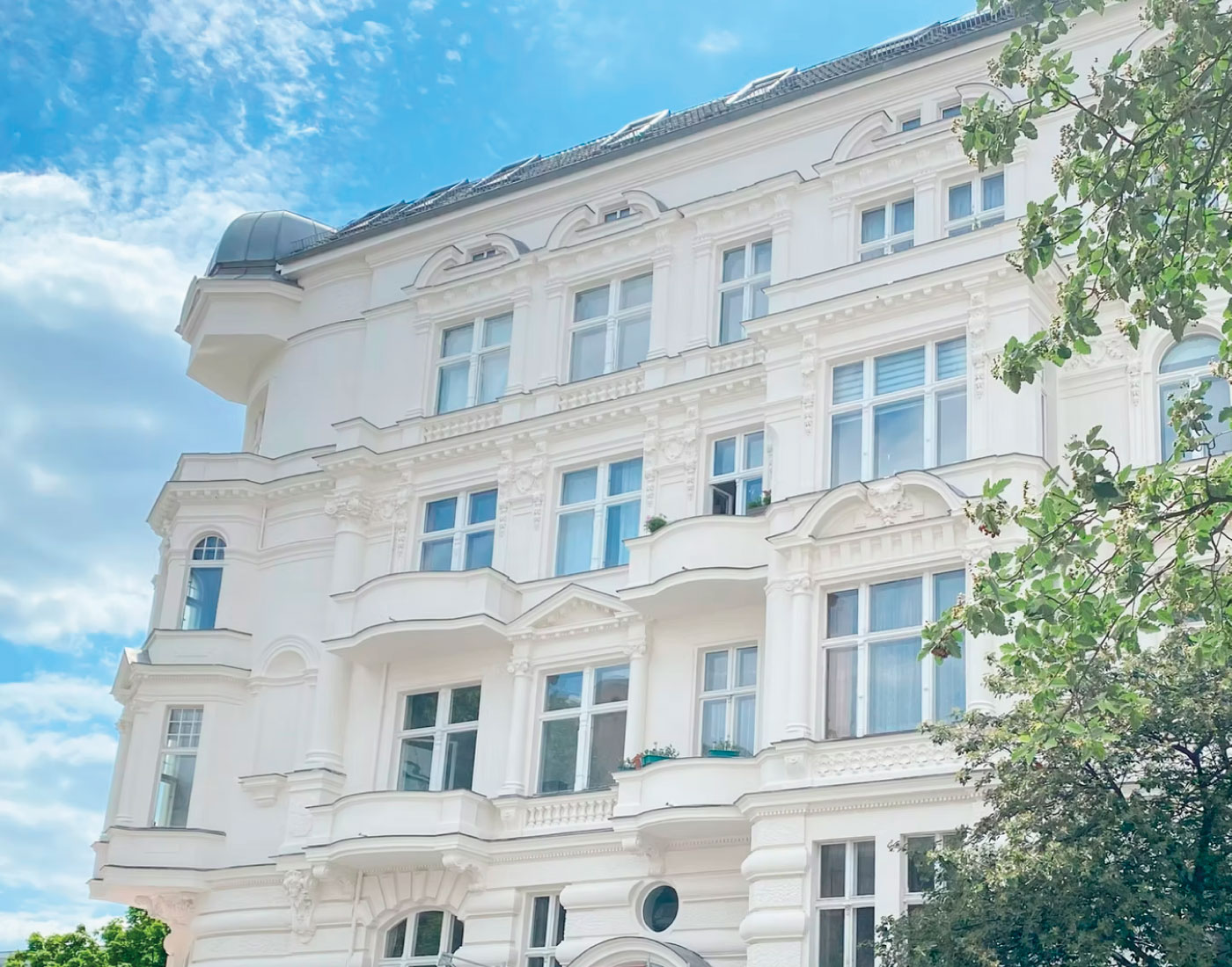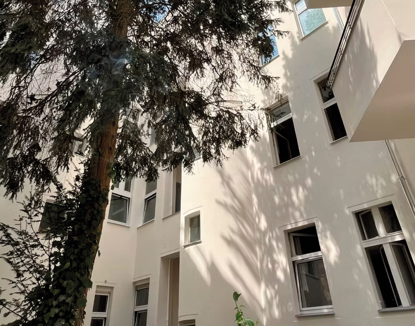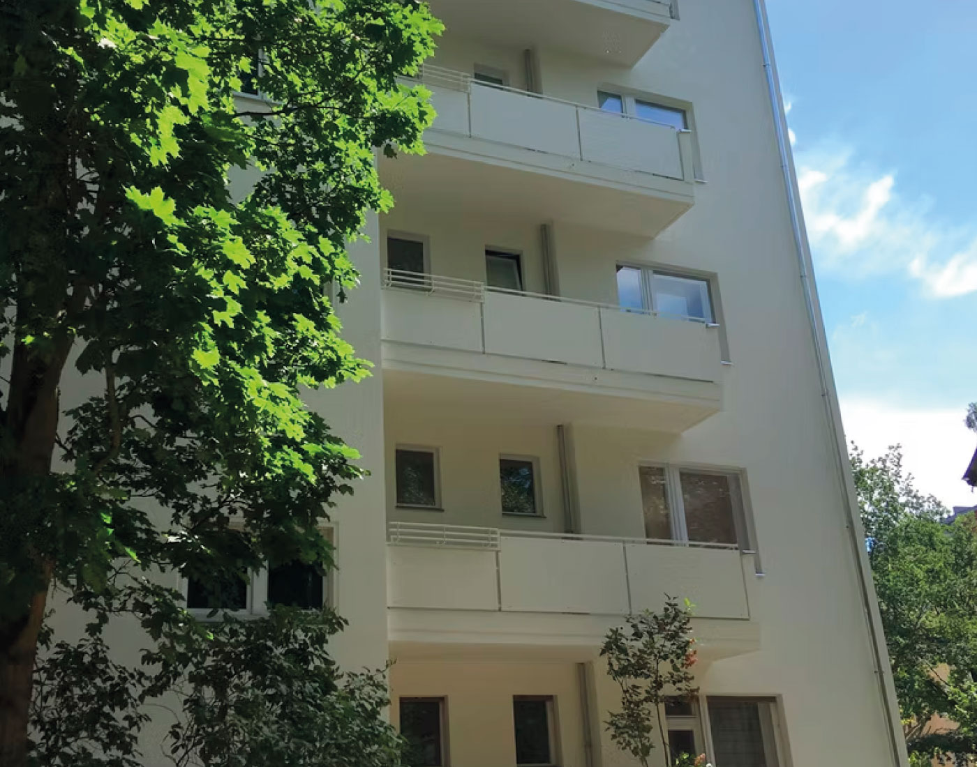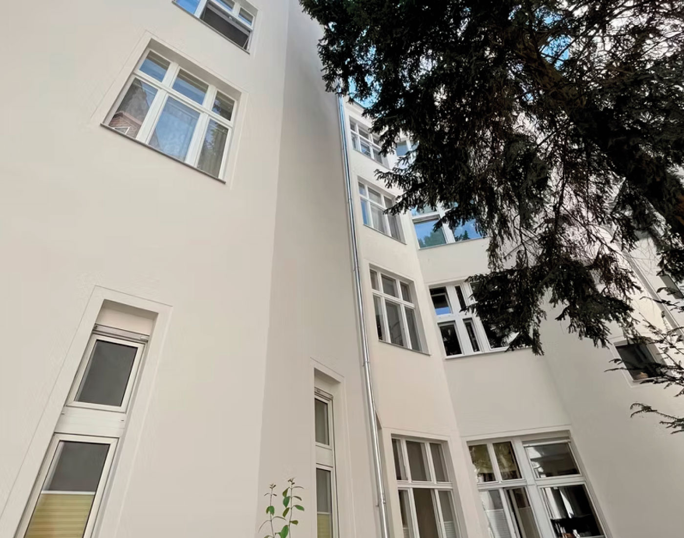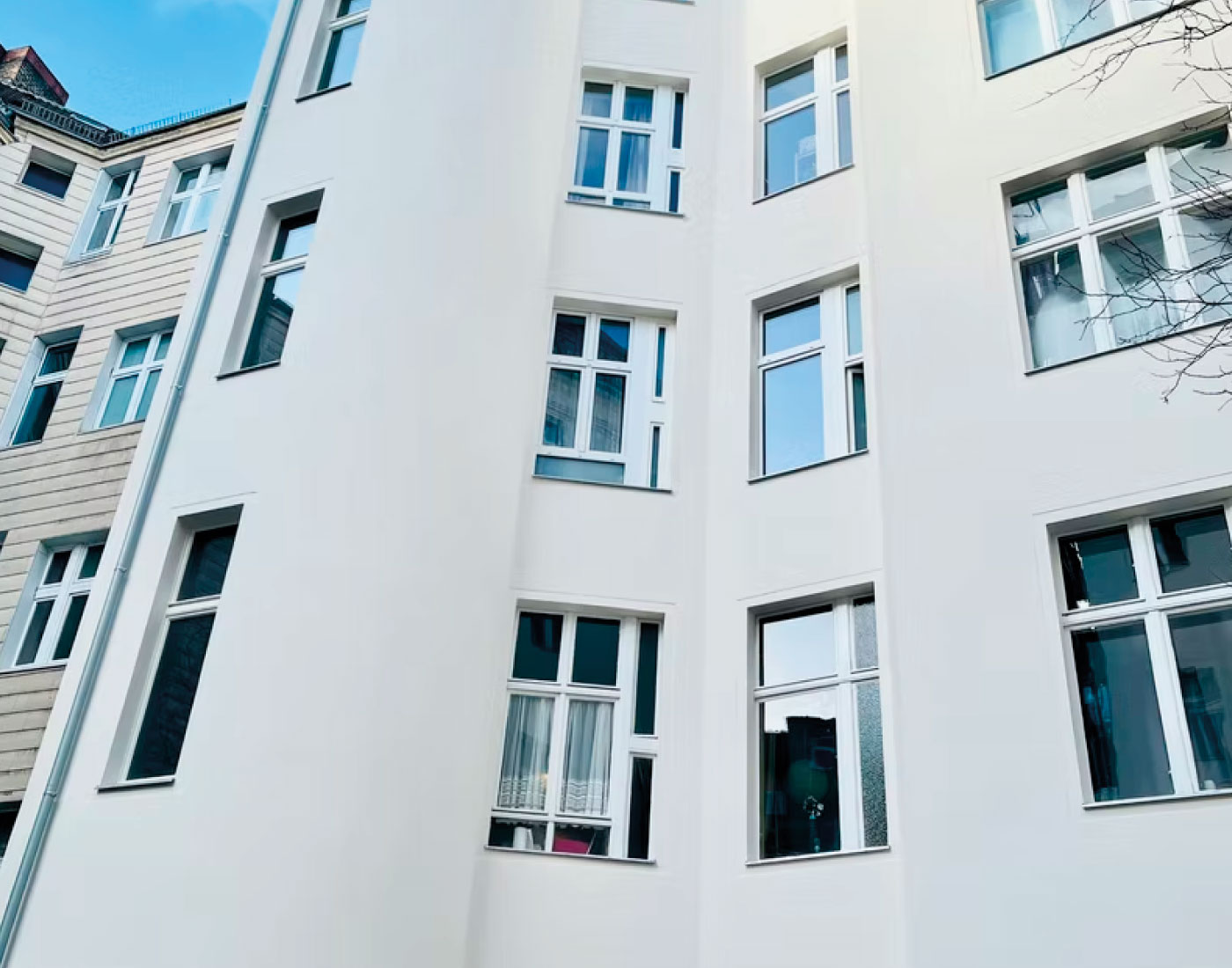 In der Mariannenstraße 26 überarbeiteten wir die Fassadenflächen umfassend und setzten auf eine ruhige, elegante Farbgebung. Die präzise Ausführung und die sorgfältige Materialwahl sorgen für ein dauerhaft gepflegtes Erscheinungsbild, das die Architektur klar hervorhebt.