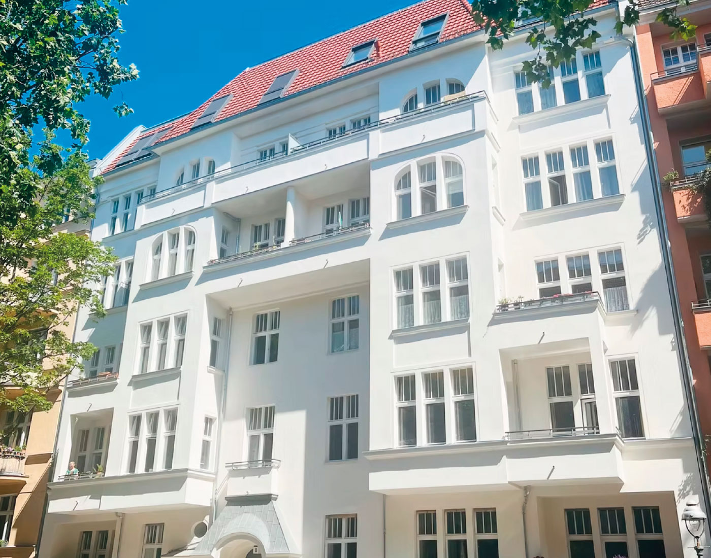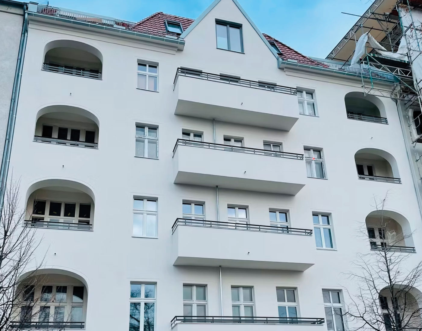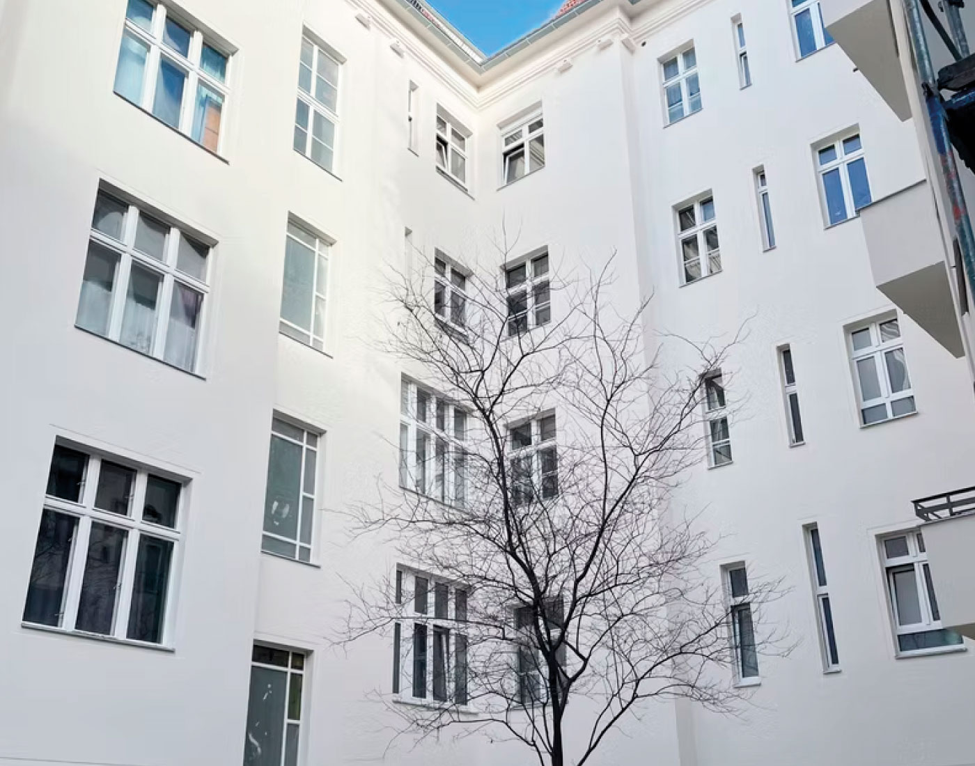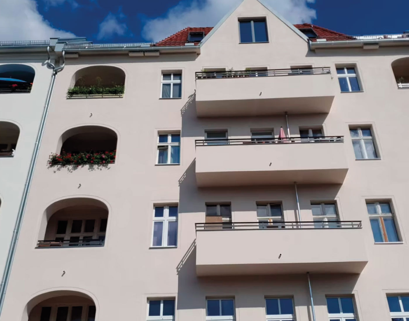 In der Mariannenstraße 26 überarbeiteten wir die Fassadenflächen umfassend und setzten auf eine ruhige, elegante Farbgebung. Die präzise Ausführung und die sorgfältige Materialwahl sorgen für ein dauerhaft gepflegtes Erscheinungsbild, das die Architektur klar hervorhebt.