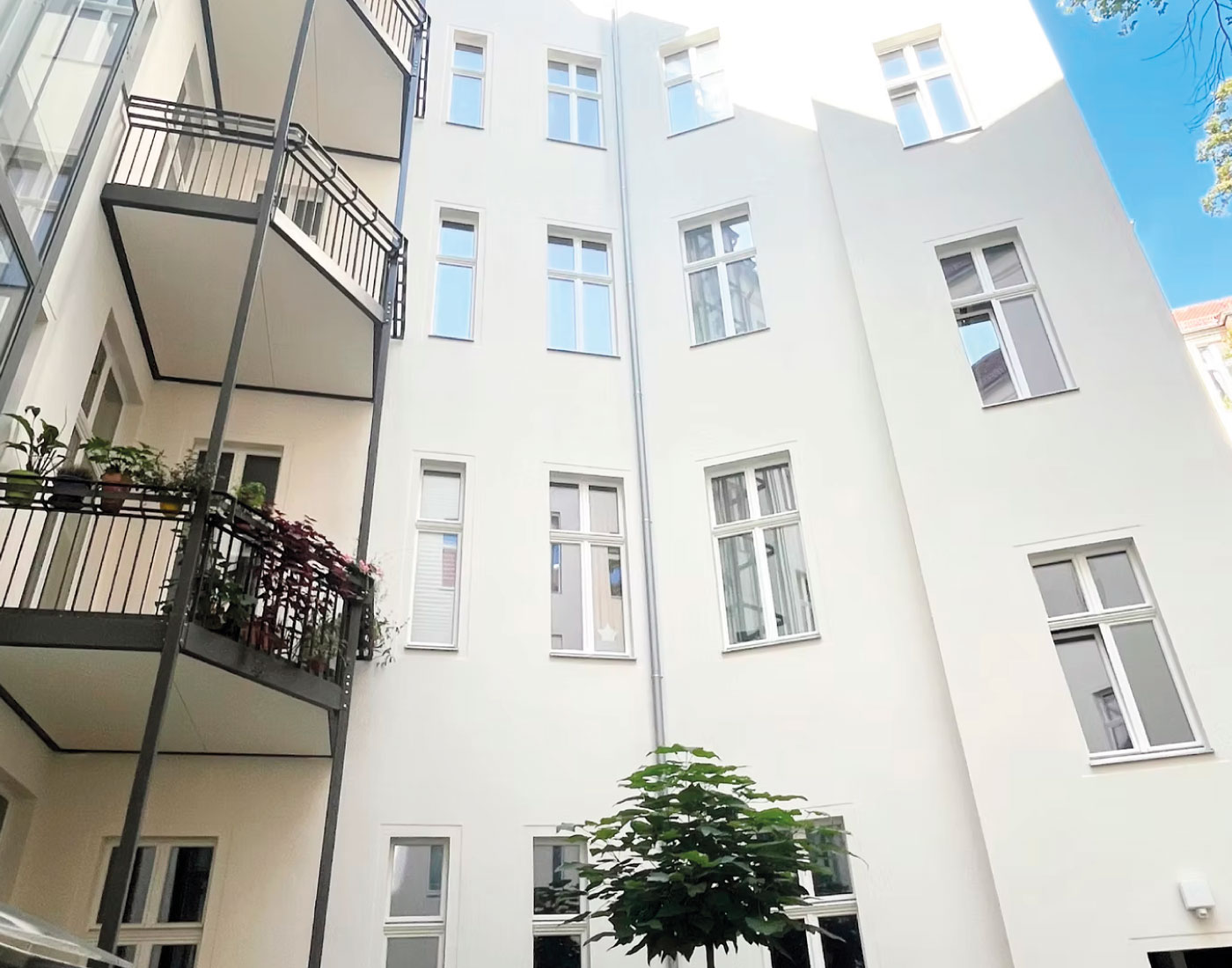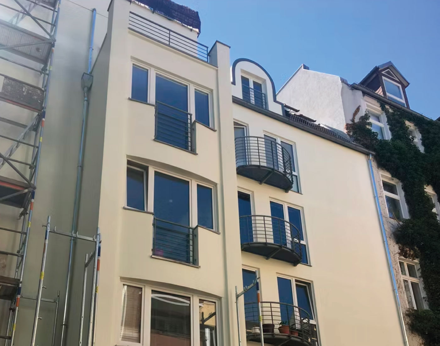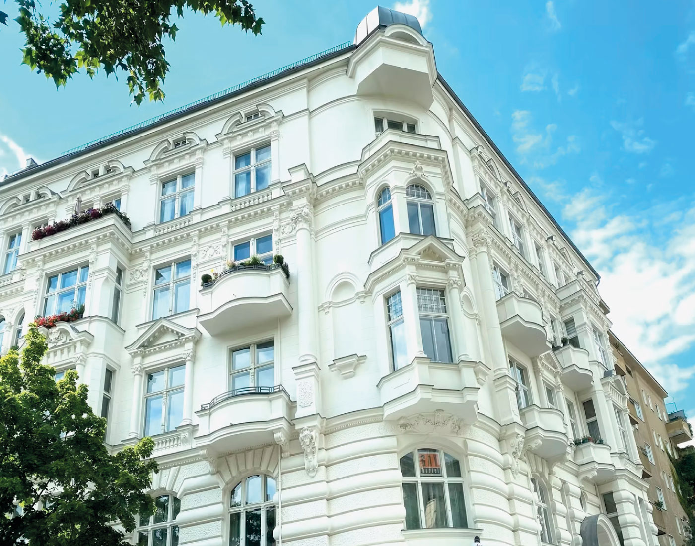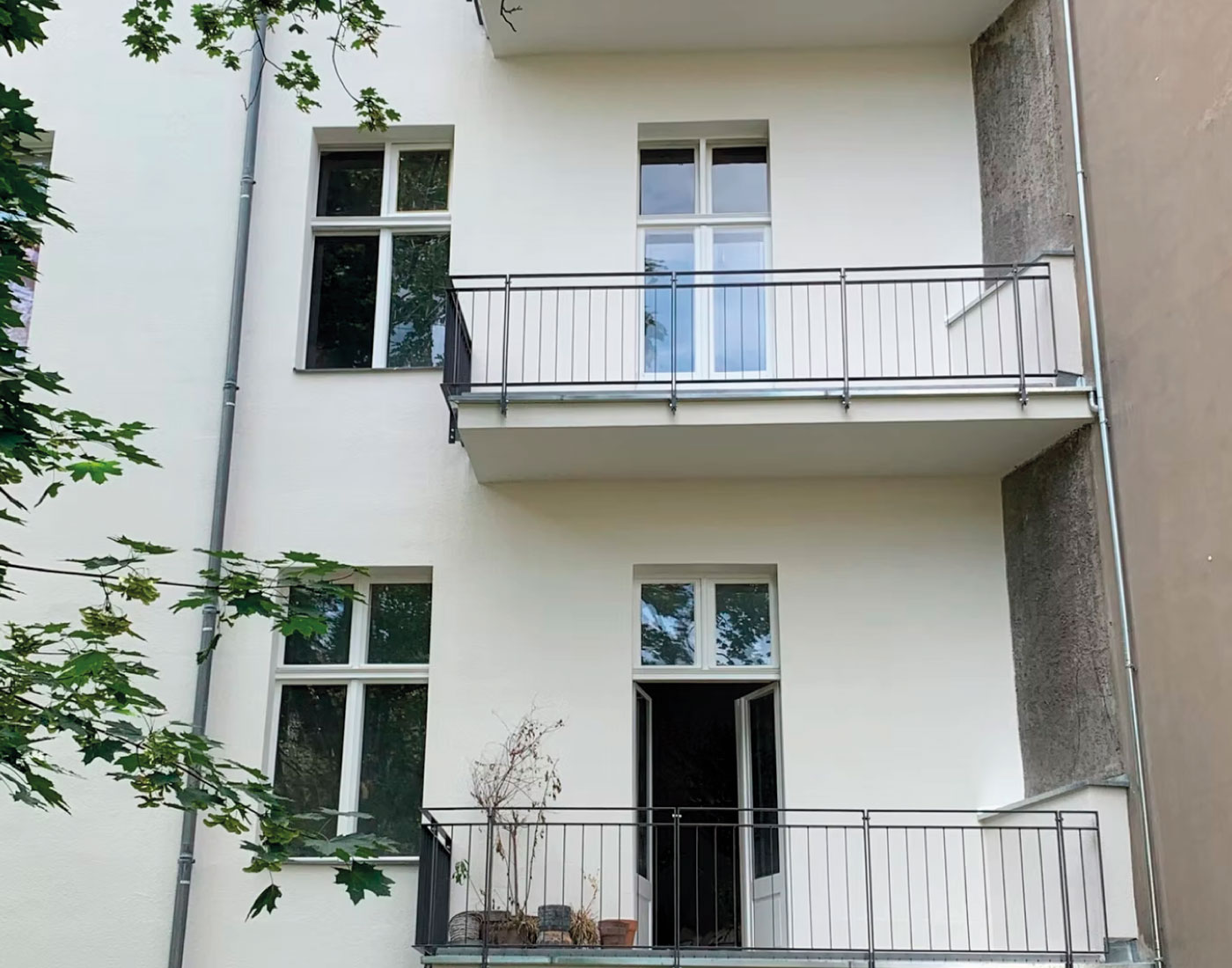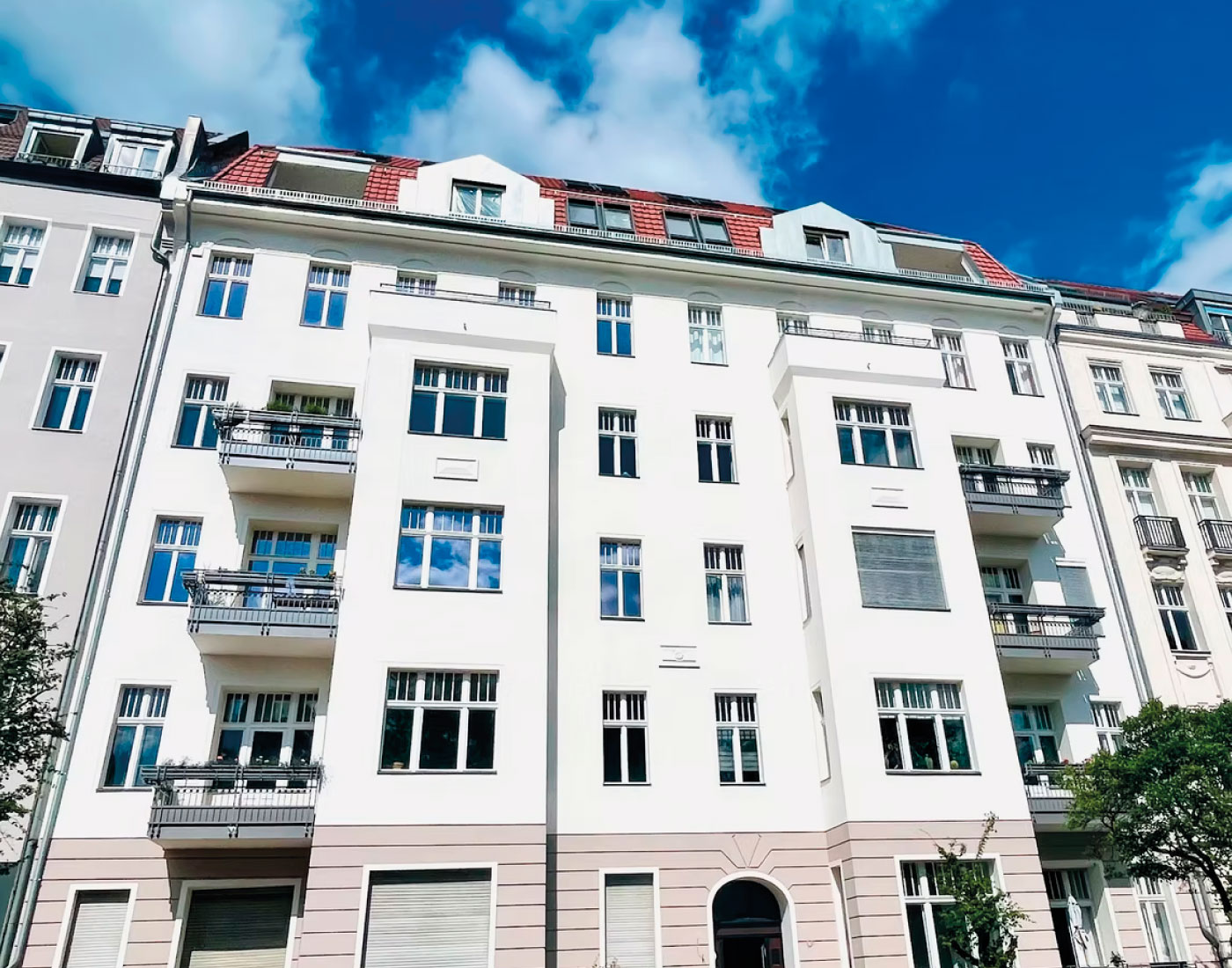 In der Mariannenstraße 26 überarbeiteten wir die Fassadenflächen umfassend und setzten auf eine ruhige, elegante Farbgebung. Die präzise Ausführung und die sorgfältige Materialwahl sorgen für ein dauerhaft gepflegtes Erscheinungsbild, das die Architektur klar hervorhebt.