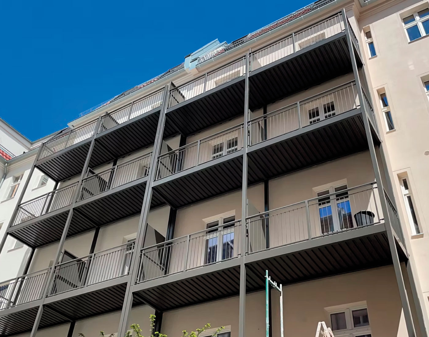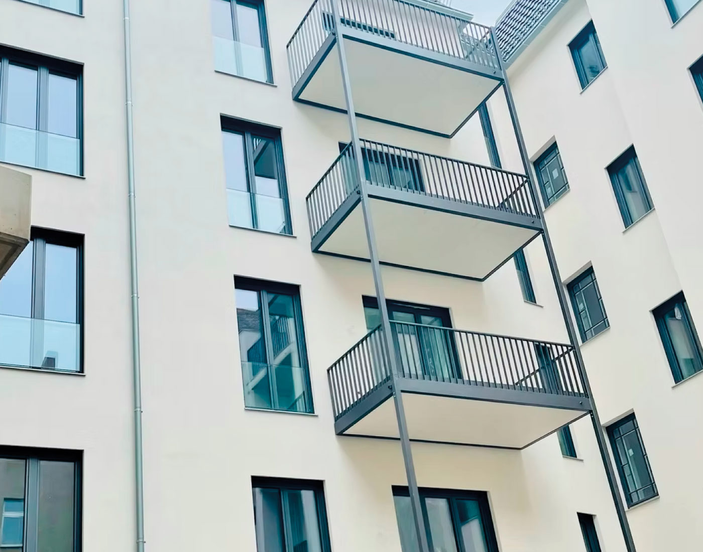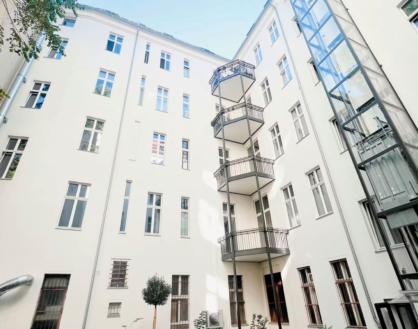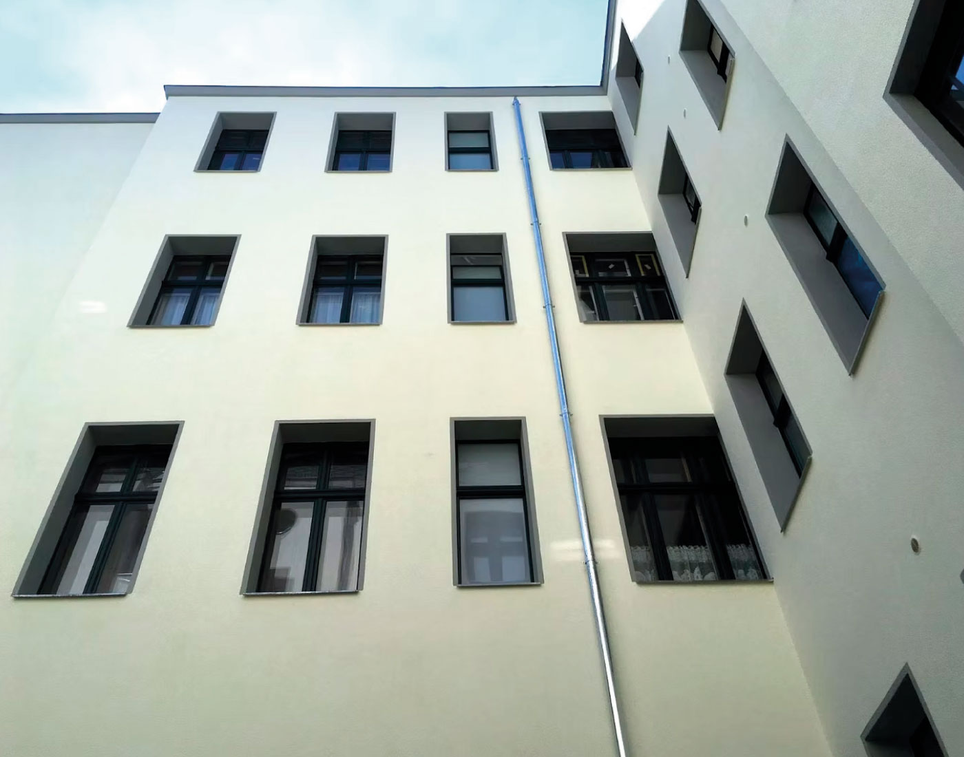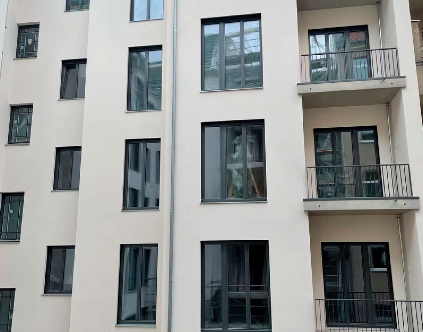 In der Mariannenstraße 26 überarbeiteten wir die Fassadenflächen umfassend und setzten auf eine ruhige, elegante Farbgebung. Die präzise Ausführung und die sorgfältige Materialwahl sorgen für ein dauerhaft gepflegtes Erscheinungsbild, das die Architektur klar hervorhebt.