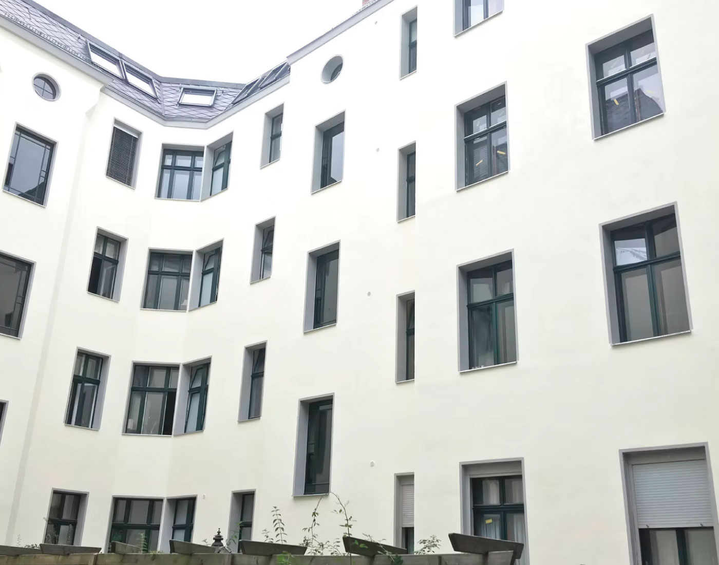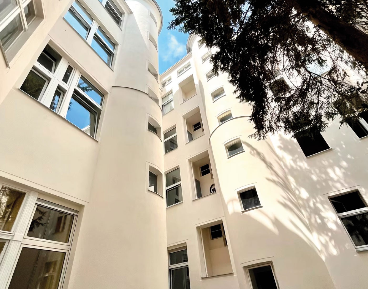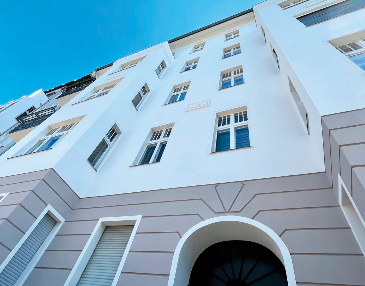 Die Arbeiten an der Motzstraße 28 umfassten eine vollständige Überarbeitung der Fassadenflächen. Durch strukturierende Putzarbeiten, eine sorgfältige Abstimmung der Farbtöne und eine robuste Schlussbeschichtung erhielt das Gebäude eine klare, moderne Präsenz, ohne seinen ursprünglichen Charakter zu verlieren.