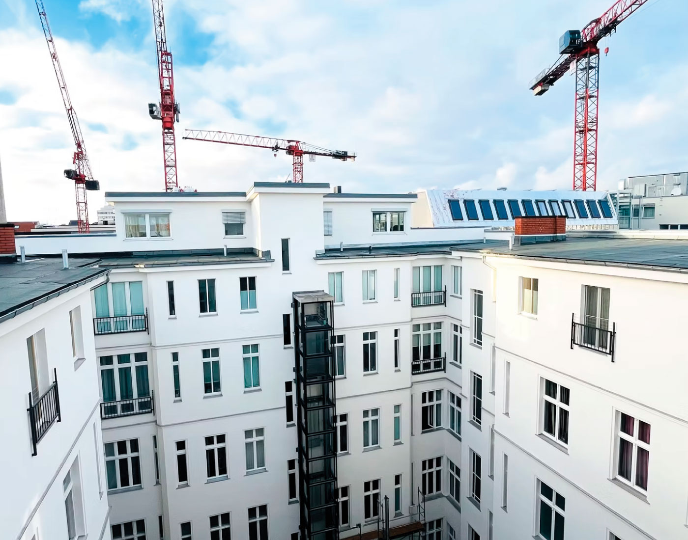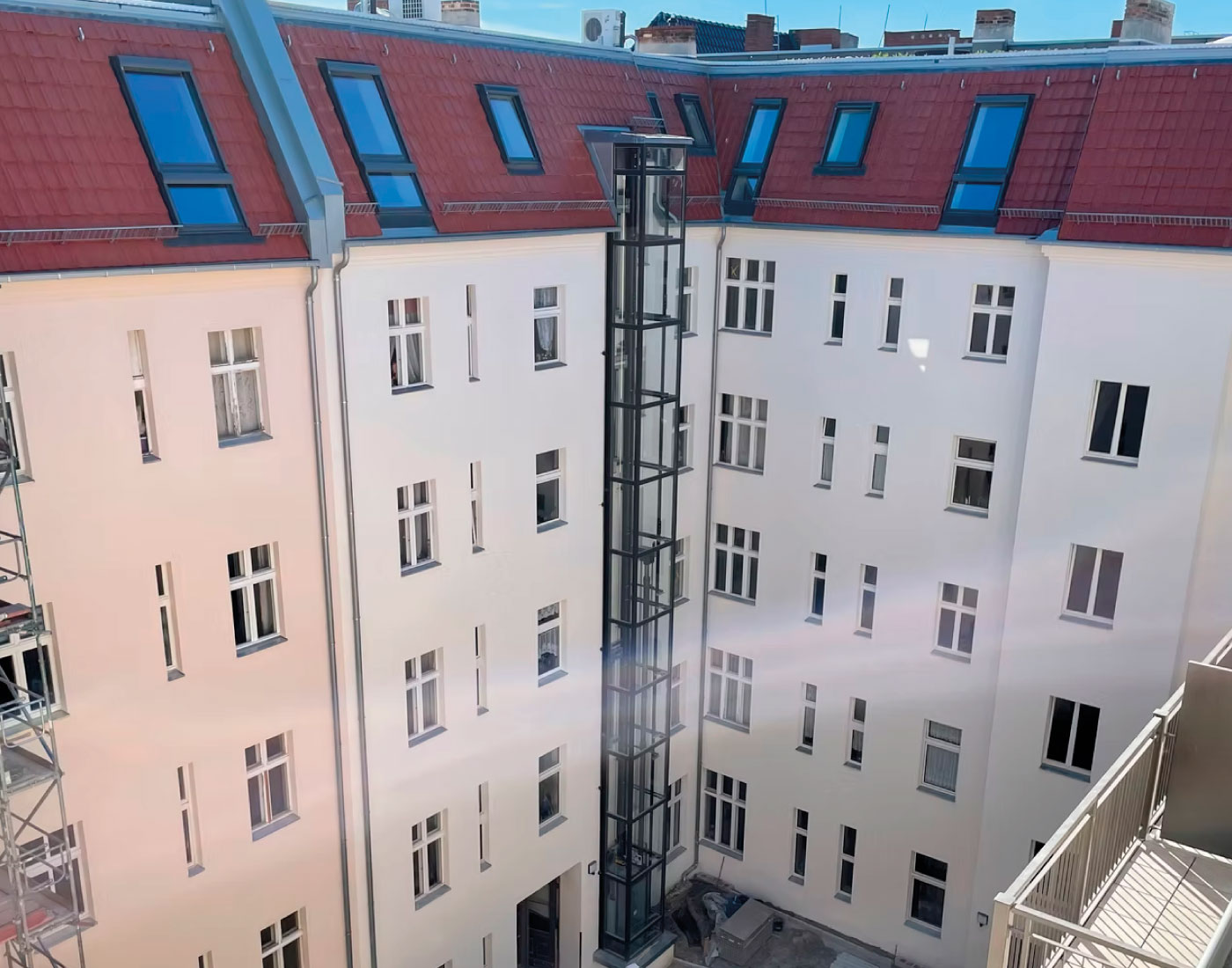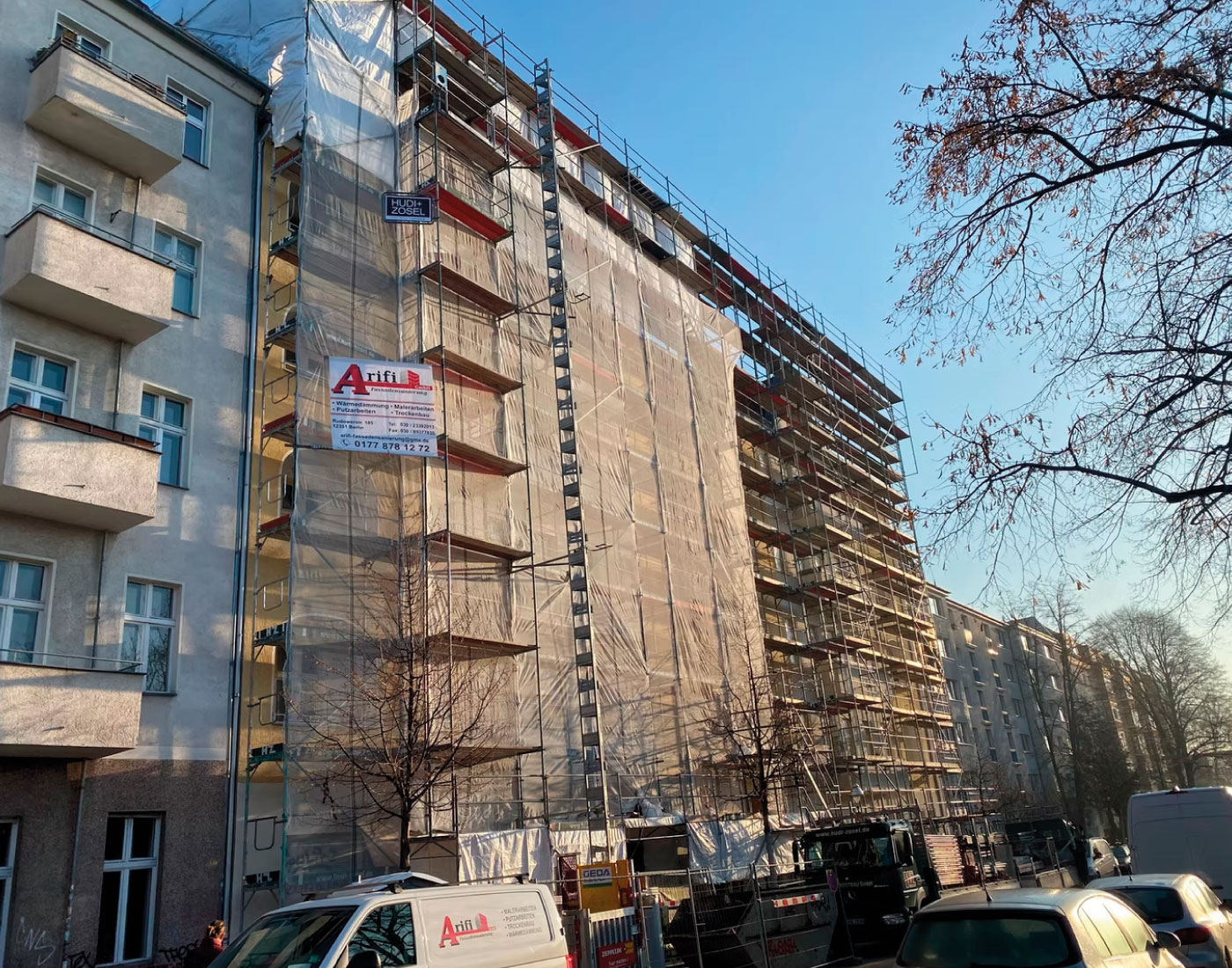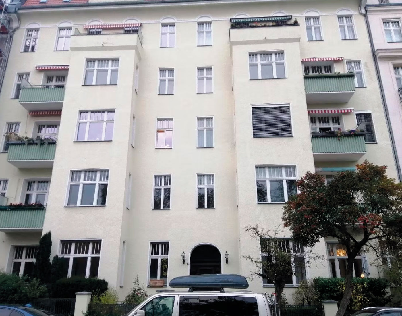 Die Arbeiten an der Motzstraße 28 umfassten eine vollständige Überarbeitung der Fassadenflächen. Durch strukturierende Putzarbeiten, eine sorgfältige Abstimmung der Farbtöne und eine robuste Schlussbeschichtung erhielt das Gebäude eine klare, moderne Präsenz, ohne seinen ursprünglichen Charakter zu verlieren.