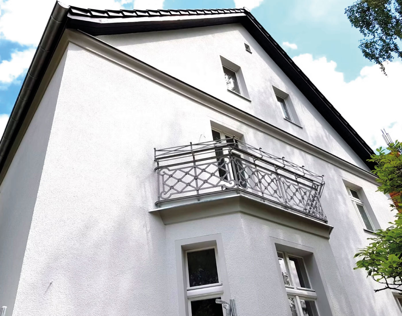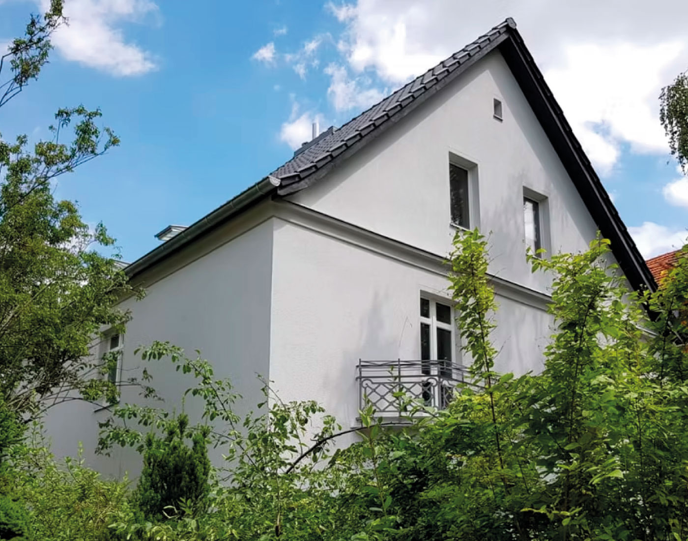 Hier stand die harmonische Verbindung von Bestand und moderner Oberflächengestaltung im Mittelpunkt. Wir überarbeiteten Putzflächen, setzten Akzente in der Farbgebung und sorgten für eine gleichmäßige, hochwertige Fassadenoptik. Das Ergebnis stärkt die Ausdruckskraft des Gebäudes und verbessert seine Witterungsbeständigkeit.
